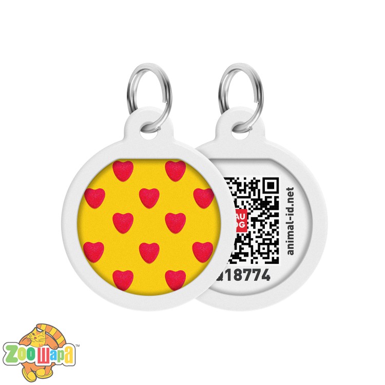 - Адресник WAUDOG Smart ID c QR паспортом, персонализированный, металлический, S, рисунок "Сердца", круг, диаметр 25 мм (5979), (2059790000002)