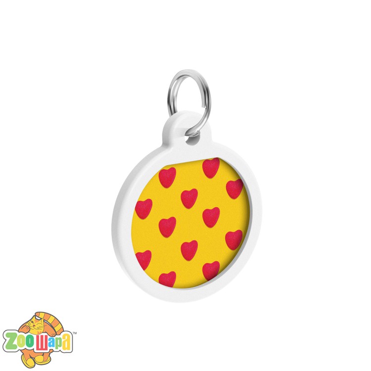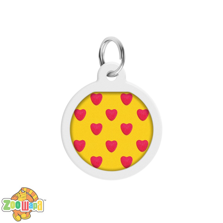 Collar Адресник для собак и котов металлический WAUDOG Smart ID c QR паспортом, рисунок "Сердца", круг, Д 25 мм (0625-0203), (4823089330013)