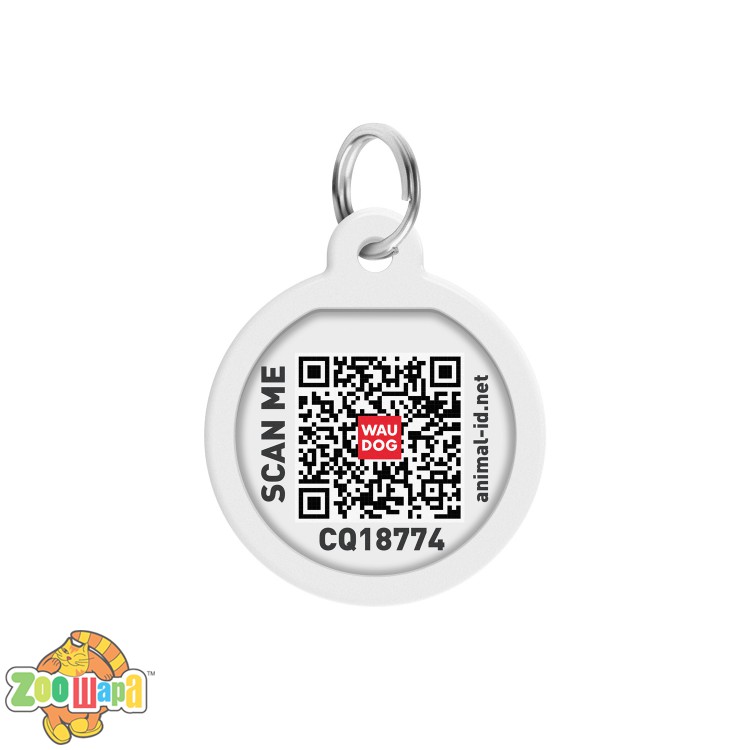 - Адресник для собак и котов металлический WAUDOG Smart ID c QR паспортом, рисунок "Маршмеллоу", круг, Д 25 мм (0625-0214), (4823089331225)
