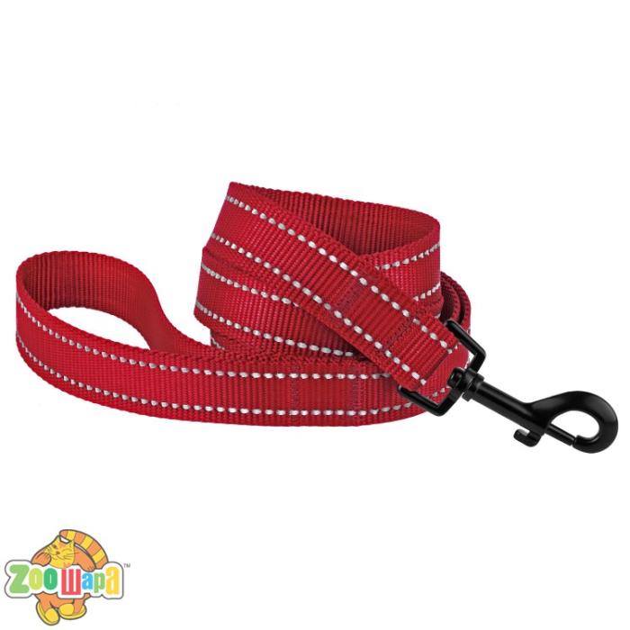 Поводок изготовлен с вплетением светоотражающей нити. Он укомплектован надежным металлическим карабином с карбоновым покрытием.