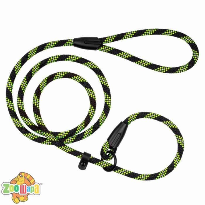 Мы изготавливаем эти чрезвычайно прочные и стильные поводки удавки для собак из высококачественного нейлонового альпинистского шнура с вплетением светоотражающей нити.