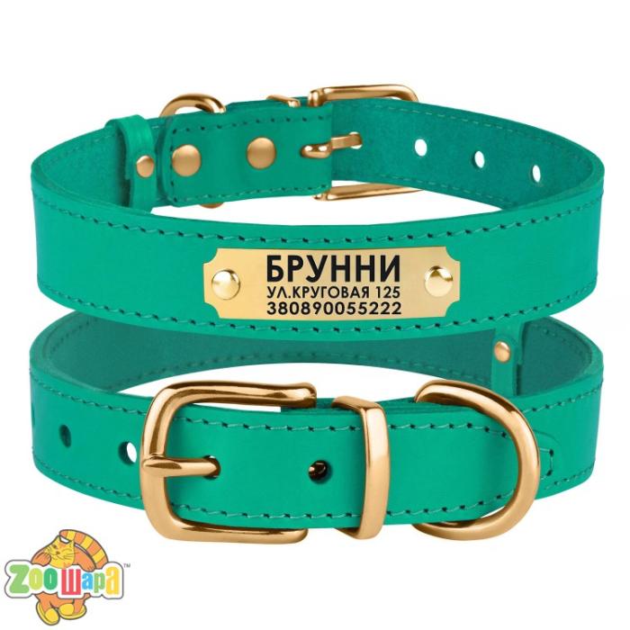 Bronzedog Ошейник для собак кожаный Classic с литой латунной фурнитурой бирюзовый. Размер XXS Обхват шеи 18-25 см. Ширина 1 см.