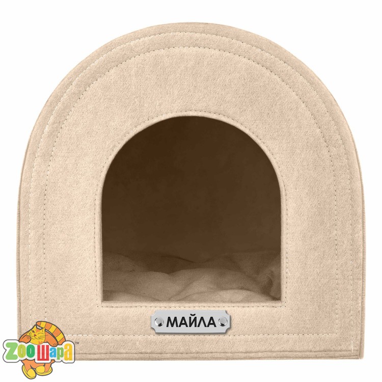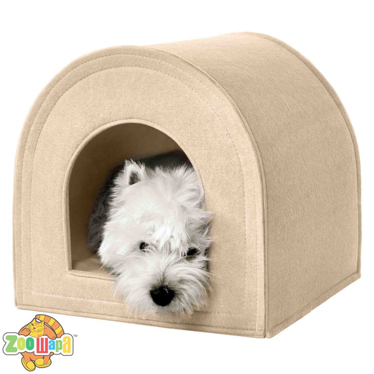 - Домик для животных Хатка бежевый, Размер М 45*45*45 см, (Холлофайбер/Поролоновая крошка)