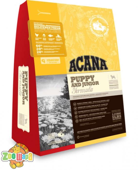 Ввиду более грамотного подбора и сбалансированного состава ингредиентов, нежели в традиционных сухих кормах, Acana Puppy & Junior может расцениваться как высокопротеиновая и низкоуглеводная диета для щенков средних пород. Применение только натуральных ингредиентов, выращенных и выловленных в дикой природе или в условиях, близких к естественной среде обитания, придало широкую популярность рассмотренному сухому корму супер премиум класса.