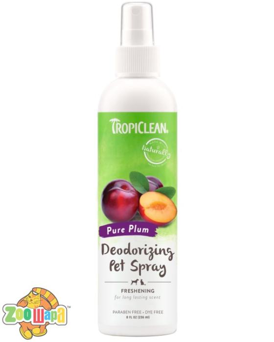 Дезодоруючий спрей "Слива" для домашніх тварин освіжає, захищає та заспокоює шерсть та шкіру улюбленця. Засіб розщеплює джерело неприємного запаху, ефективно дезодоруючи вашого пухнастика між купаннями. Може використовуватись для свіжості спальних місць тварини та будинку в цілому.