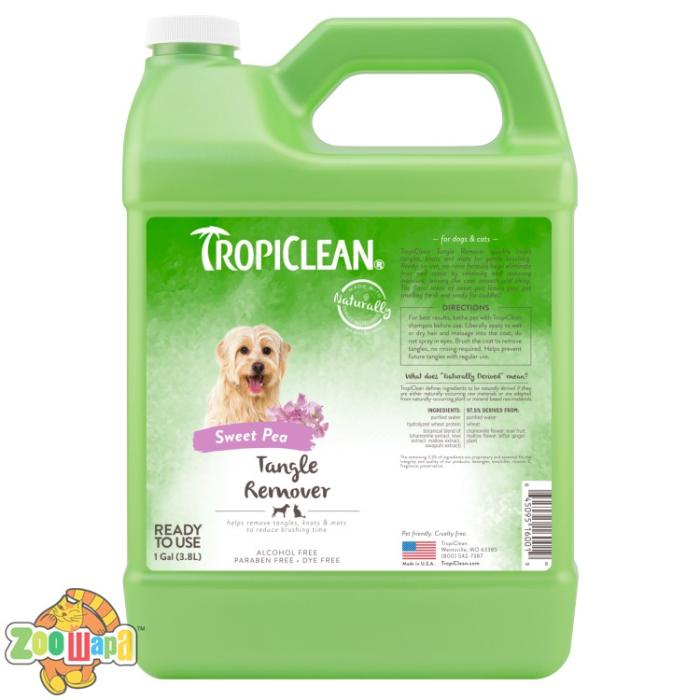 Засіб для розплутування ковтунів TropiClean – це багатофункціональний спрей, що не лише допомагає швидко розплутати найскладніші ковтуни, а й доглядає за шерстю, відштовхуючи бруд і додаючи їй блиску. Формула засобу не потребує змивання й має антистатичний ефект. Після використання спрею шерсть вашого улюбленця позбудеться ковтунів і набуде сяючого блиску та стійкого приємного аромату солодкого горошку.
