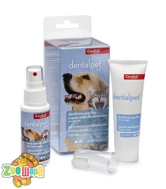Властивості: Комплексний захист зубів та ясен тварини. Зручний набір, який містить усе необхідне для повного догляду за ротовою порожниною собак та котів. Паста Dental Pet з високою адгезивністю для щоденного догляду за ротовою порожниною домашных тварин. Спрей Dental Pet - має безспиртову формулу та активні інгрідієти, які пригнічують накопичення зубного нальоту.