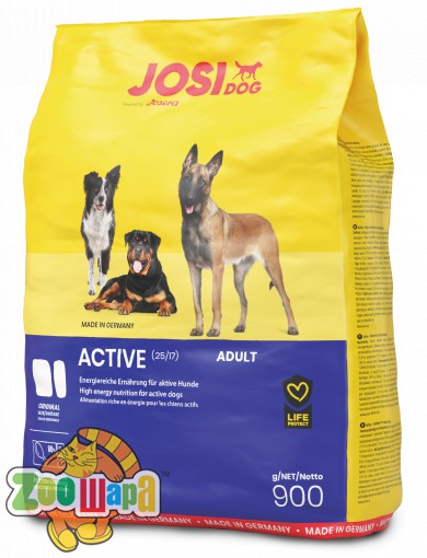JOSERA JosiDog Active высокоэнергетический корм для активных взрослых собак. Питательная безглютеновая рецептура обеспечивает достаточное количество энергии для очень активных и спортивных собак.