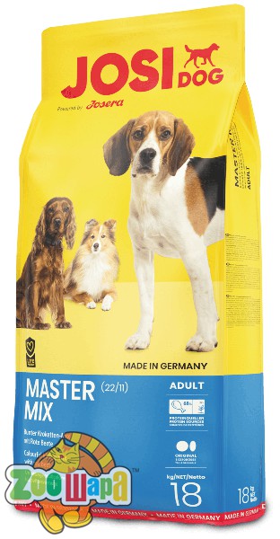 JOSERA JosiDog Master Mix сочетает в себе хрустящие кукурузные хлопья с вкусными кусочками мяса.