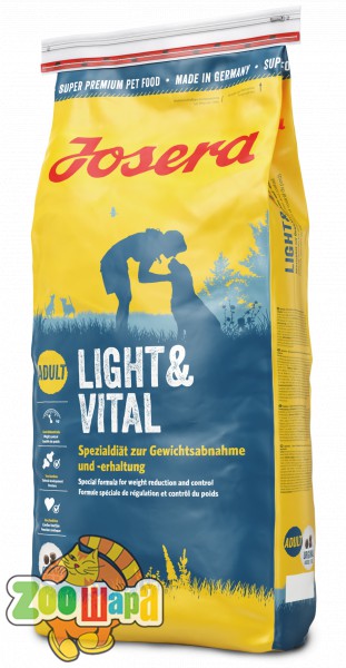 JOSERA Light & Vital разработан для лентяев, которые должны беречь фигуру. Ограниченное содержание жира и большая доля балластных веществ приводят к меньшему содержанию калорий, но, тем не менее, делают питомца сытым. L-карнитин и таурин поддерживают функционирование сердца и продолжают возраст собаки.
