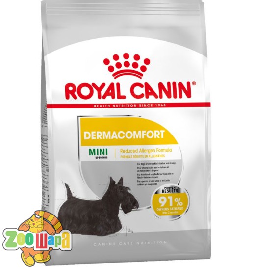 Сухой корм премиум класса Royal Canin Mini Dermacomfort - полнорационный корм для взрослых и стареющих собак пород мелких размеров (весом от 1 до 10 кг) в возрасте 10 месяцев и старше. Используется для кормления собаки при появлении раздражений и зуде кожи, связанных с повышенной чувствительностью.