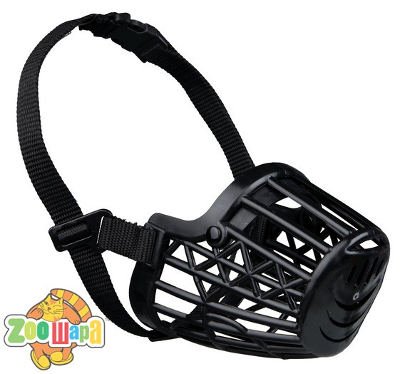 Пластиковый намордник для собак с крупной сеткой, гарантирующей безопасность и не нарушающей дыхательные процессы животного. Регулируемый нейлоновый ремешок. Цвет - черный. Размер XL. Охват морды 31 см.