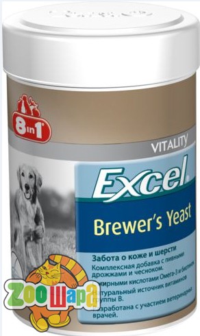 8in1 Brewers Yeast with Garlic - комплекс витамин с пивными дрожжами и чесноком для собак . Ежедневная витаминная добавка 8in1BrewersYeast with Garlic - содержит полный спектр аминокислот, в т.ч. метионин, витамины группы В, жирные кислоты Омега-3, биотин, микроэлементы (цинк).