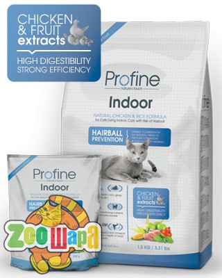 Сухой корм супер премиум класса Profine Cat Indoor предназначен для использования в качестве основного рациона питания специально для взрослых кошек всех пород, содержащихся в помещении. Инновационная формула данного корма способствует естественному выводу комочков шерсти из организма животного. Сбалансированное содержание витаминов и микроэлементов обеспечит здоровье и красоту Вашего пушистого любимца.