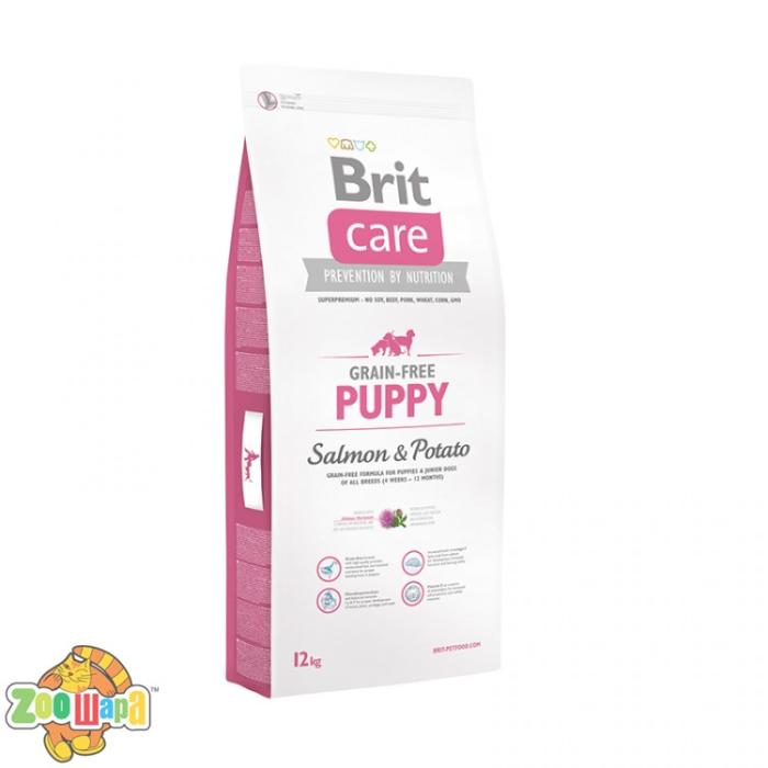Полнорационный беззерновой сухой корм Brit Care GF Puppy Salmon&Potato с лососем и картофелем предназначен для сбалансированного питания щенков и юниоров возрастом 1-12 месяцев всех пород (вес взрослой собаки 5-90 кг).