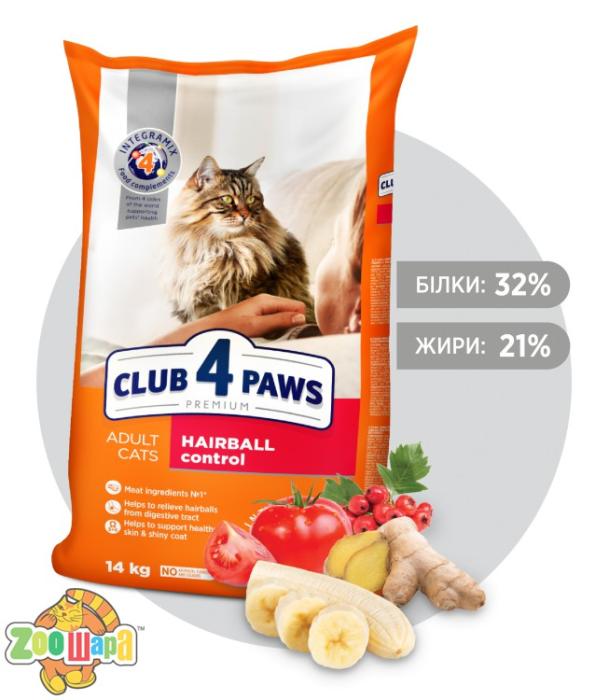 Клуб 4 лапы Корм для кошек (эффект выведения шерсти) 14 кг.