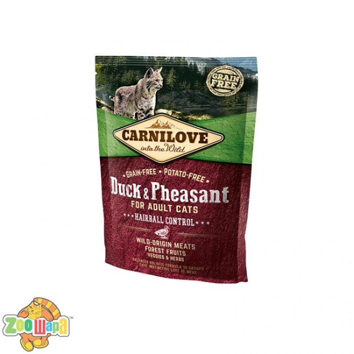 Полнорационная формула без зерновых и картофеля с мясом утки и фазана разработана для обеспечения взрослой кошки необходимыми элементами. Комплекс растворимых и нерастворимых волокон снижает количество шерстяных комков, и способствует их легкому выведению.