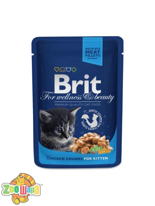 Brit Premium Cat pouch курица для котят (100г) Полноценный влажный корм с куриным мясом для котят. Консервы премиум класса изготовлены из натурального сырья, без добавления вкусовых усилителей, ароматизаторов и красителей. Состав консервов разработан с учетом пищевых потребностей растущего организма котят, чтобы обеспечить полноценное питание. Консистенция и размер кусочков удобны для челюстей котенка.