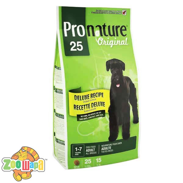 Считаете, что Ваш четвероногий друг нуждается в лучшем и более нежном питании? Предложите ему Pronature Original ДЕЛЮКС – супер премиум корм на основе мяса курицы, без кукурузы, пшеницы и сои. Это очень вкусный сухой корм, который подходит даже собакам с чувствительным желудком. Ваш любимец будет Вам благодарен!
